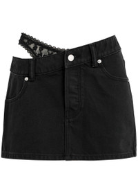 Info & Care alexanderwang.t denim;skirt Belt loops, slip pockets, asymmetric waist with lace underwear-effect panel, two back patch pockets,;faded finish Partially concealed button fastenings at front 100% cotton Dry clean Size & Fit Length waist to hem: 13 inches/ 33cm Midweight A-line cut Model is 5'9"/ 175cm and wears a size;W27