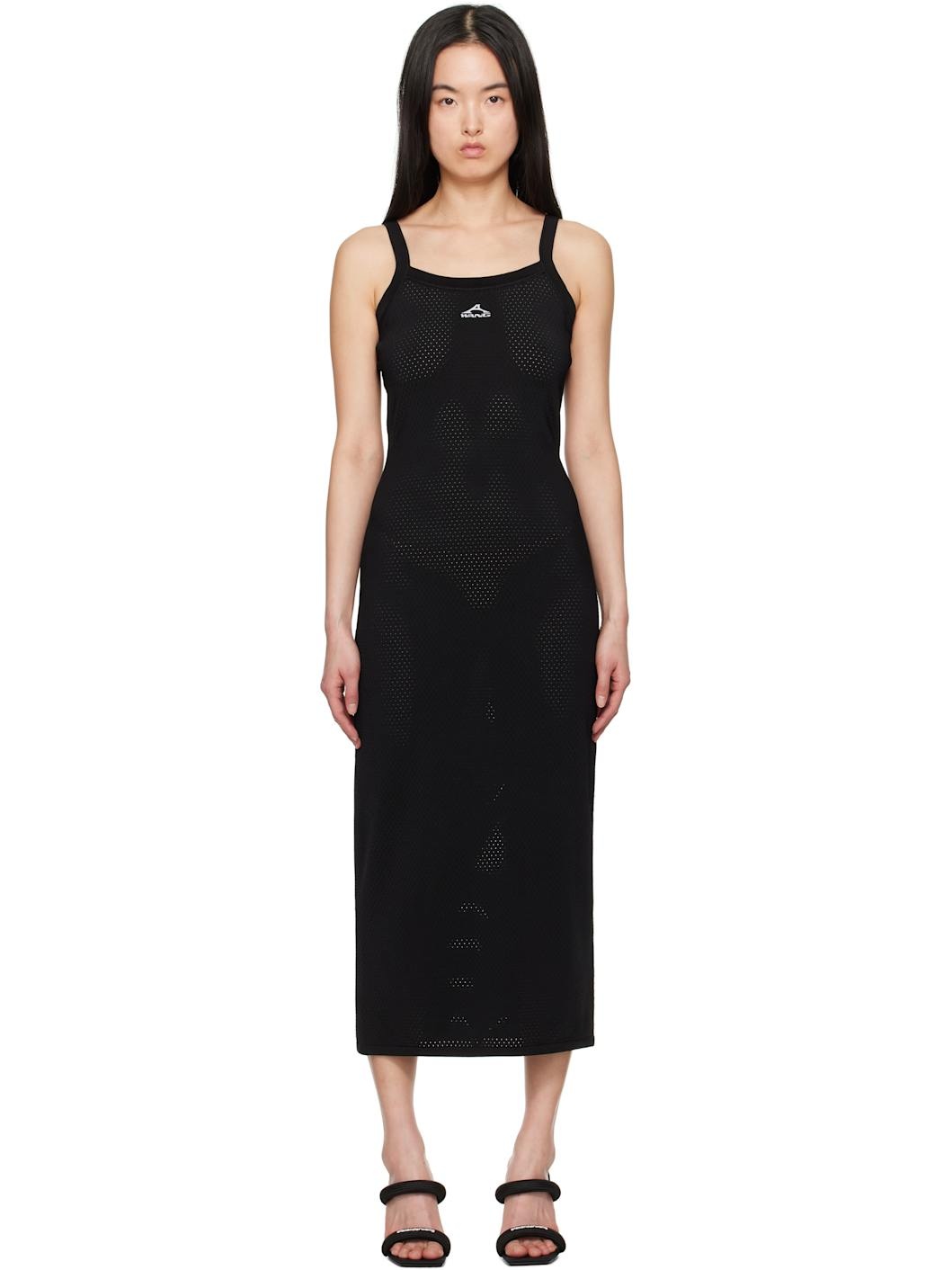 Semi-sheer stretch viscose-blend mesh midi dress. · Rib-knit scoop neck and shoulder straps · Logo bonded at chest Supplier color: Black Body: 74% viscose, 21% polyamide, 5% elastane. Trim: 88% viscose, 10% polyamide, 2% elastane. Made in China 251214F054000