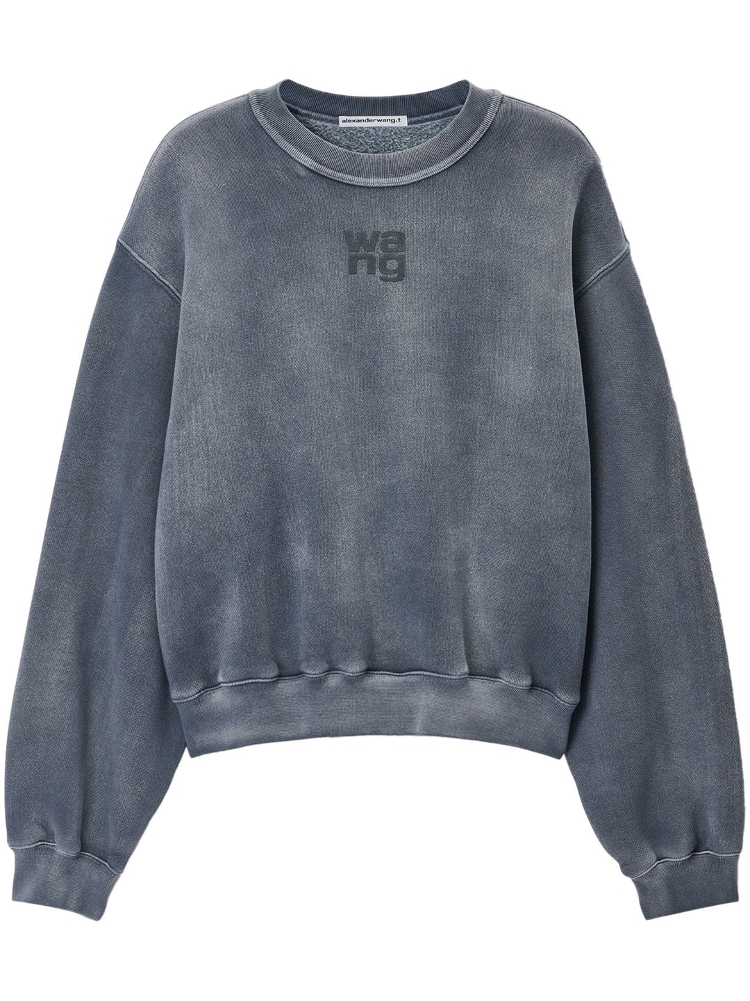 T By Alexander Wang Puff Logo Sweatshirt In Structured Terry This heavy terry sweatshirt, detailed with a stacked logo at the front, is garment-dyed with grey coloring, resulting in a weathered look.