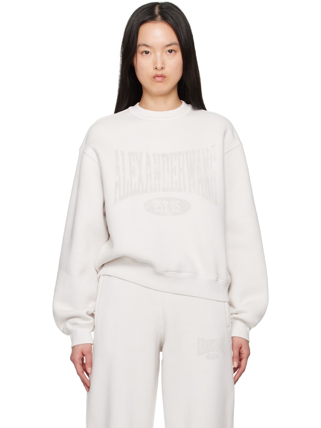 Cotton-blend fleece sweatshirt. Fading throughout. · Rib-knit crewneck, hem, and cuffs · Logo printed at front · Dropped shoulders Supplier color: Dirty white Body: 75% cotton, 25% polyester. Trim: 99% cotton, 1% elastane. Made in China 251214F098009