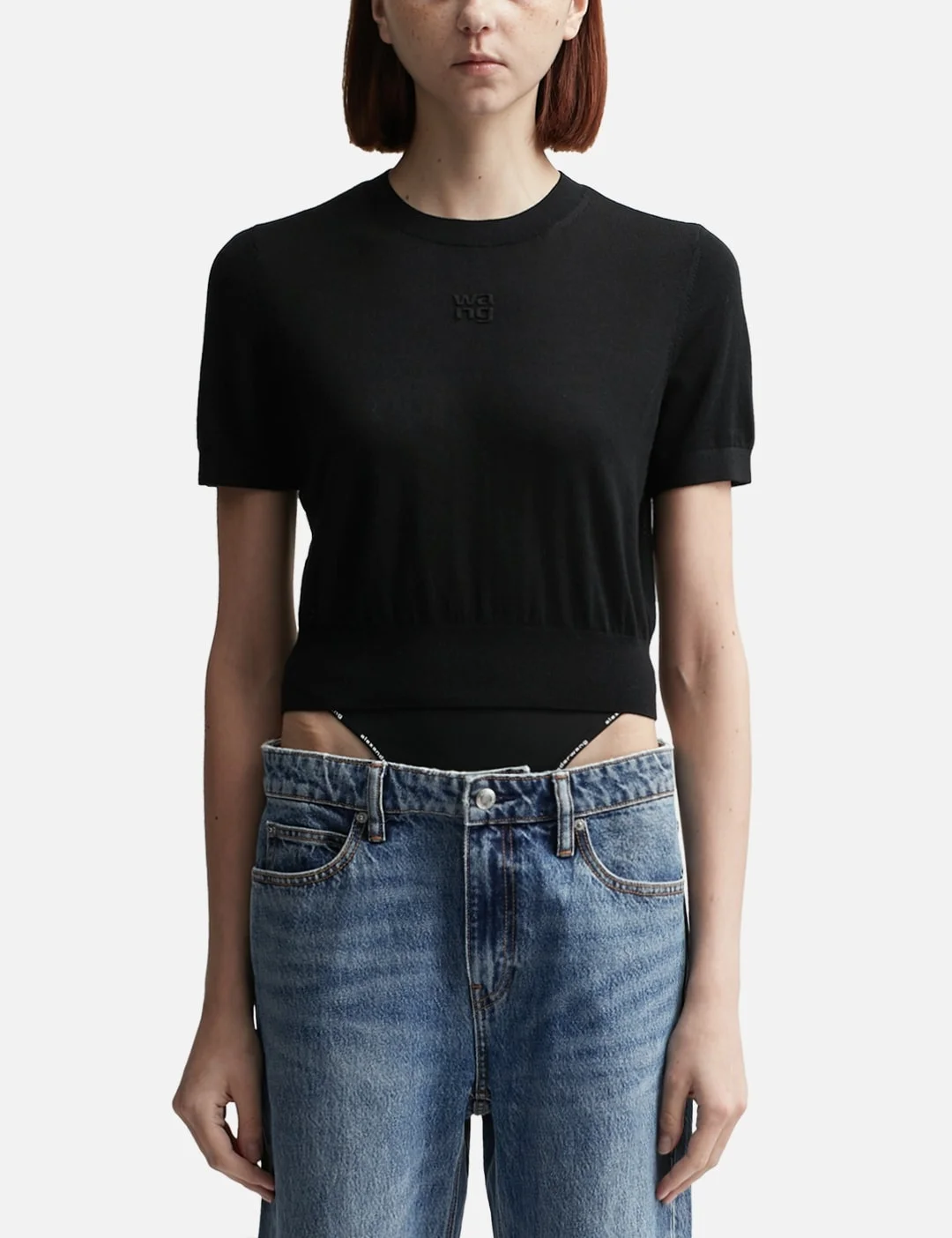 - T By Alexander Wang - Logo-embossed Tee In Superfine Merino Wool - Made of responsible superfine merino wool - Relaxed fit - Cropped - Crewneck - Short sleeves - High-frequency embossed logo - Ribbed trims - Color: Black - Material: 100% Wool - See more SS T-Shirts, T-Shirts and Clothing SIZING - Model wears size S - Model measures: Height 177cm, Chest 32”/81cm, Waist 23.5”/59.7cm, Hip 33’’/83.8cm