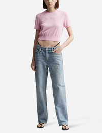 - T By Alexander Wang - Mid-rise Jeans With Pre-styled Logo Thong - Oversize fit, hits at hip - Mid-rise fit - Indigo washed - Belt loops - Zip fly, button closure - Pre-styled thong detail - Diamante logo charm at the back - 5-pocket style - Straps with a slider to customize fit and silhouette - Straight leg - Color: Vintage Faded Indigo - Material: 100% Cotton - See more Jeans and Clothing SIZING - Model wears size 26 - Model measures: Height 177cm, Chest 32”/81cm, Waist 23.5”/59.7cm, Hip 33’’/83.8cm