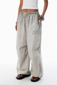 600071200GRY00M / 4WC3254846/TWG/051 - Elasticated waistband with adjustable drawstring - Mid-rise fit - Side cargo pockets - Lightweight parachute fabric construction - Relaxed tapered leg - Embroidered logo detail Alexander Wang Mid-Rise Parachute Track Pant delivers contemporary streetwear with utilitarian design and relaxed comfort. Crafted from lightweight parachute fabric in neutral sage, featuring cargo pockets and adjustable drawstring waistband. The mid-rise silhouette and technical construction create a versatile statement piece for modern wardrobes.