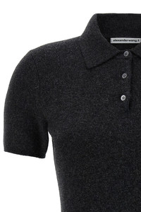 cod. 4KC4256063010 Wool melange polo shirt mini dress with collar and buttons, front logo patch and short sleeves. Color: Gray Size & Fit: true to size fit Composition: 88% wo, 10% pa, 2% ea Made in: China
