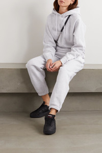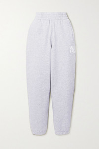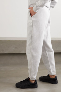 Printed mélange cotton-blend jersey track pants
