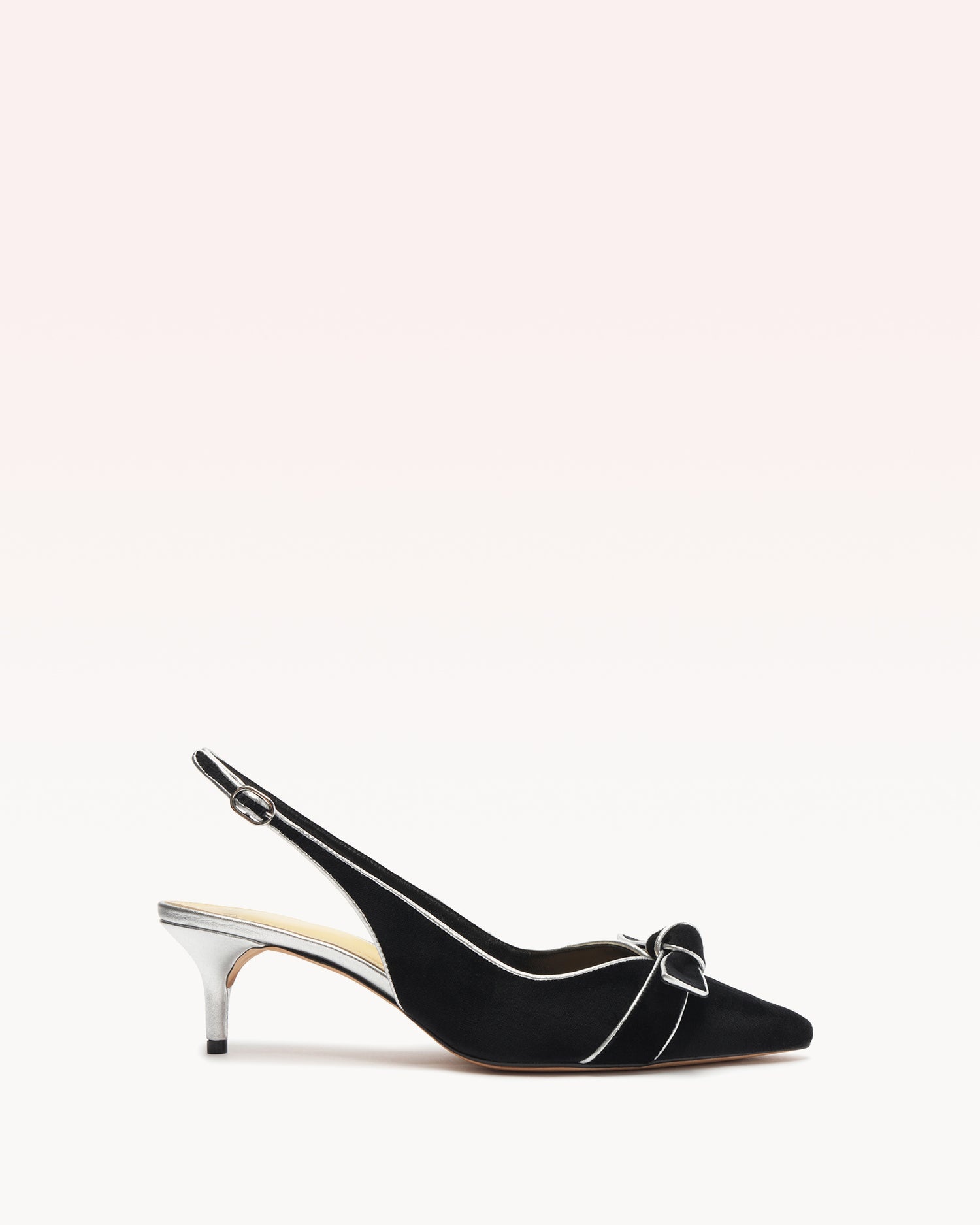 Indulge in luxury with the Angelita Slingback Velvet Pump. Crafted with a mix of sumptuous velvet and sleek leather, this slingback pump is the epitome of sophistication. Elevate any outfit with this elegant and exclusive shoe, designed to make a statement and leave a lasting impression. Material: Velvet and Leather Leather Sole Heel Type: Stiletto Heel Height: 50mm SKU: B3505802480001