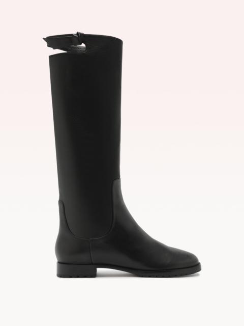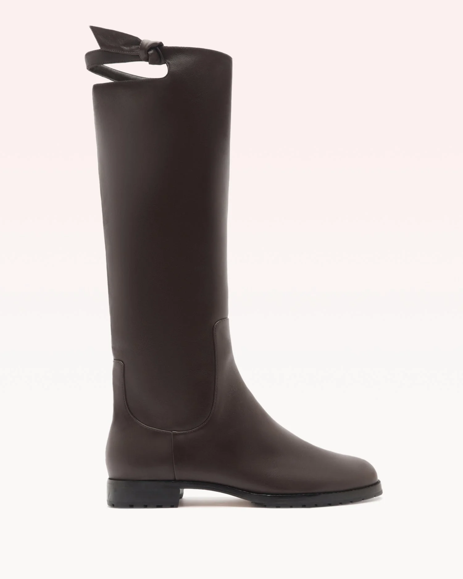 Elevate your style with the Asymmetric Clarita Saddlery boot. Crafted from Nappa Charm, its innovative cut and feminine half bow at the back add a contemporary touch. Modern and timeless in every detail. Heel Style: Flat Hell Height: 0,6 In | 15 mm Heel Type: Rounded Toe Material: Leather | Leather Sole SKU: B0020690370002