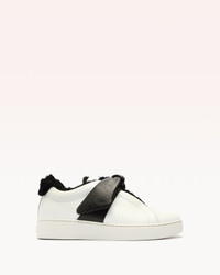 Step out in our new Clarita Sneaker, reimagined with an asymmetric bow. This sport-luxe style is hand-crafted from smooth leather with a flat rubber sole that makes it ideal for on-the-go moments. - Please note: this style runs large. We suggest taking a size smaller than your normal size. - Material: Nappa Leather - Made in Italy - Round toe - Heel height: 1.2in | 30mm - Style: B7900000130002 - This style comes in whole sizes only - Fit: Customers who are half sizes should order the next whole-size down from their normal size