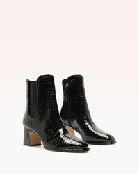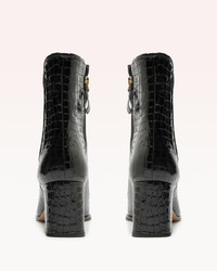 Alexandre Birman’s classic chelsea boot style features a slightly square toe. Elegantly framed by a delicate round leather welt enveloping the toe and all covered in leather. This classic bootie has been reimagined and crafted in a crocco embossed material, infusing it with a touch of modern look. - Material: Crocco Patent Leather - Ankle height bootie - Round toe - Heel height: 2.4in | 60mm - SKU: B3574400010017
