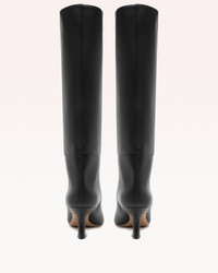 Brena 60 is a luxury black boot crafted in smooth vitello leather. This elegant boot features a pointed toe and sculptural geometric heel, combining timeless design with bold sophistication—perfect for elevating any day-to-night look. Heel Style: Geometric Heel Heel height: 2.3in | 60mm Pointed Toe Material: Vitello Leather Leather Sole SKU: B0606400030004