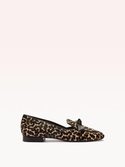 A timeless smoking loafer elegantly crafted with leopard pony for a touch of wild sophistication. At the forefront sits a slim Clarita bow, crafted with finesse from nappa leather, creating a striking contrast against the classic loafer silhouette. This infusion of timeless style with a hint of playful, animal-inspired detail makes this loafer a standout piece. - Material: Leopard Pony & Nappa Kiss Leather - Leather sole - Round toe - Heel height: 0.4in | 10mm - SKU: B3537100120001