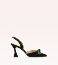 Indulge in luxury with our Clarita Bell Slingback 85. Meticulously crafted with exquisite Velutto leather, this timeless style features a classic tailored pointy toe and our signature DNA knot. The slingback design adds a touch of elegance to any outfit, making it a must-have addition to your wardrobe for all-day comfort and chic sophistication. Heel Style: Sculptural Hell Height: 3,3 In | 85 mm Pointed Toe Material: Fabric | Leather Sole SKU: B0606500020028