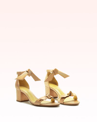 A manageable block heel makes it effortless to walk in the Clarita Block Sandal. Created with two of our signature bow details, this silhouette will ground polished on-duty and laid-back off-duty looks with inimitable style. Please note: this style runs small. We suggest taking half size larger than your normal size. - Material: Metallic Leather - Leather sole - Block mid-heel - Round open toe - Tied bow strap at the ankle - Heel height: 2.4in | 60mm - SKU: B3500100210270