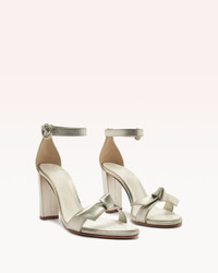 Meet the classic bridal shoe—the Clarita Bridal Block heel. Detailed with our signature Clarita bow and a comfortable 90mm block heel, this timeless style is highly coveted by brides everywhere. Crafted in a sophisticated metallic champagne leather, this refined and elegant style pair is finished with a classic round toe and ankle-strap closure. - Material: Nappa Leather - Leather sole - Block heel - Round open toe - Heel height: 3.5in | 90mm - SKU: B3503902780001