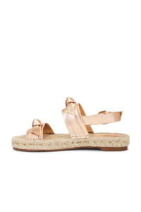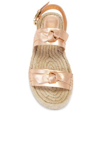 - Metallic leather upper with rubber sole - Made in Brazil - Adjustable ankle buckle closure - Jute and leather footbed with leather lining - Knotted strap design - Rounded toe - Revolve Style No. AEBR-WZ203 - Manufacturer Style No. B3586100030006