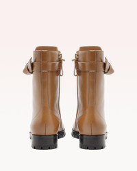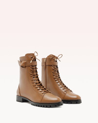 Introducing the Evelyn Bootie by Alexandre Birman, a classic combat-style boot crafted in smooth nappa leather. This boot features a sturdy lug sole, lace-up and zipper closure, together with an asymmetrical Clarita bow on the side. Heel Style: Block Heel Heel height: 0.6in | 15mm Round Toe Material: Nappa Waterproof Leather Sole SKU: B3531400070019