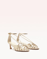 Introducing the Fran 50 Specchio Sandal, a modernist masterpiece inspired by Brazilian architecture. Its intricate cage-like design wraps the foot in a harmonious pattern, enhancing femininity and exuding alluring vibes. Crafted for both beauty and comfort, its bold lines and refined details elevate any look. Heel Style: Sculptural Hell Height: 2 In | 50 mm Rounded Toe Material: Leather | Leather Sole SKU: B3577600180003