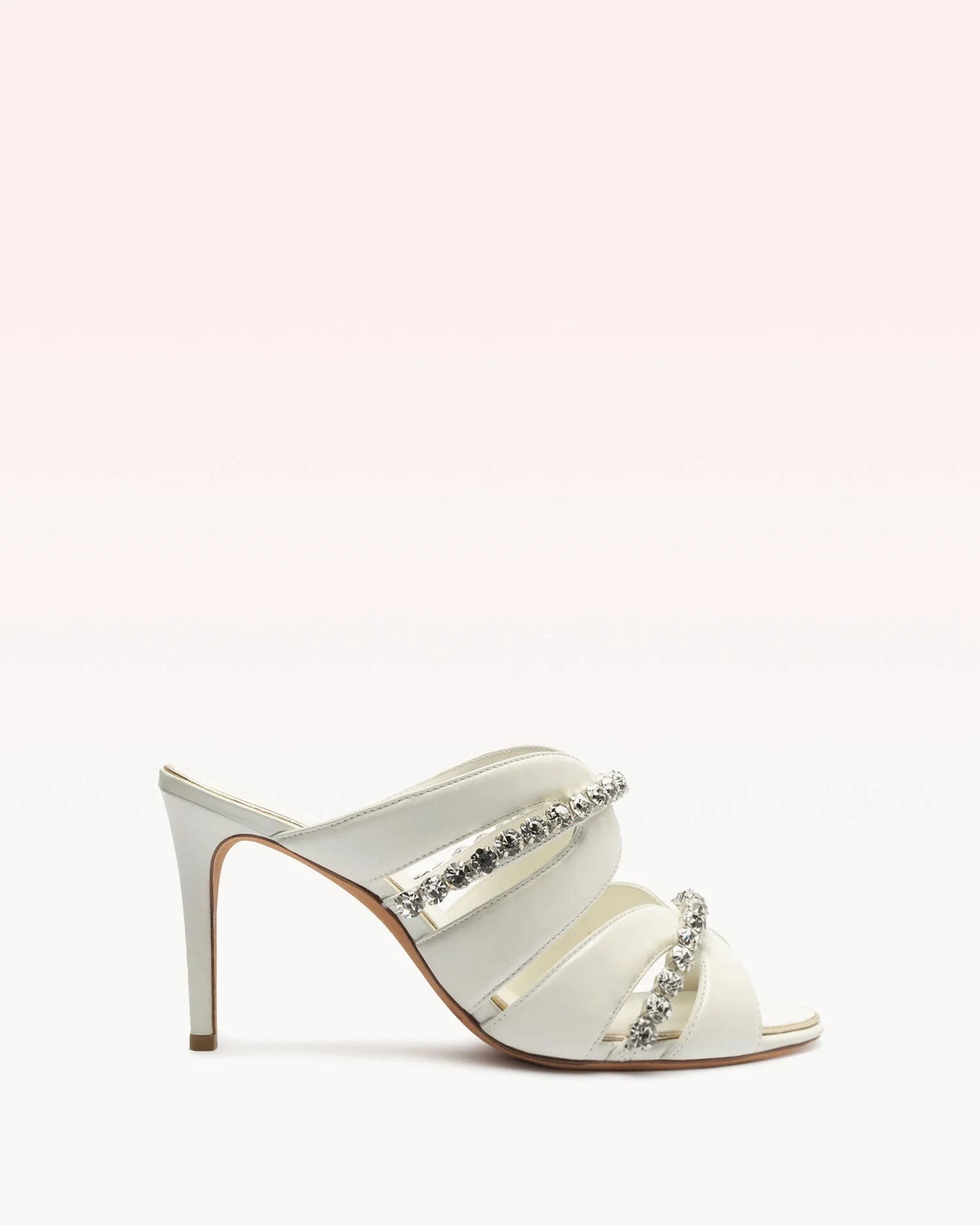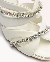 The intricate Georgina Crystal Bridal heel is a work of art—perfect for the bride who loves to make a statement. Crafted from classic ivory leather and detailed with shimmering crystals, this slide-on 85mm heel is effortless glamour, defined. - Material: Nappa Fantasy Leather & Crystal - Leather sole - Stiletto heel - Round open toe - Heel height: 3.6in | 85mm - SKU: B3508401610001