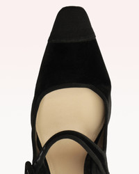 Introducing Jada Cuoio Pump, revolutionizing luxury and style with the use of velvet instead of suede. The velvety material combined with grosgrain and a toe cap creates a sophisticated contrast, while timeless elegance is elevated with a modern twist. Heel Style: Flat Hell Height: 0,6 In | 15 mm Heel Type: Square Toe Material: Fabric | Leather Sole SKU: B0606200100007