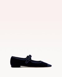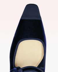 Introducing Jada Blue Pump, revolutionizing luxury and style with the use of velvet instead of suede. The velvety material combined with grosgrain and a toe cap creates a sophisticated contrast, while timeless elegance is elevated with a modern twist. Heel Style: Flat Hell Height: 0,6 In | 15 mm Heel Type: Square Toe Material: Fabric | Leather Sole SKU: B0606200100009