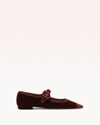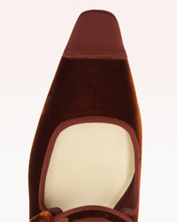 Introducing Jada Cuoio Pump, revolutionizing luxury and style with the use of velvet instead of suede. The velvety material combined with grosgrain and a toe cap creates a sophisticated contrast, while timeless elegance is elevated with a modern twist. Heel Style: Flat Hell Height: 0,6 In | 15 mm Heel Type: Square Toe Material: Fabric | Leather Sole SKU: B0606200100007