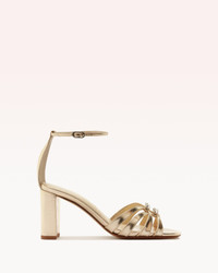 The Noelle Block Sandal combines understated elegance with captivating sparkle. This charming sandal design features a graceful heel that elongates the silhouette. Adorned with shimmering zirconia crystals, each step radiates refined glamour. Crafted from supple leather, this versatile sandal transitions effortlessly from day to evening, making it an essential addition to any discerning wardrobe. Heel Style: Stiletto Heel Height: 3.3' | 85 mm Round Toe Material: Leather | Leather Sole SKU: B3621900090001