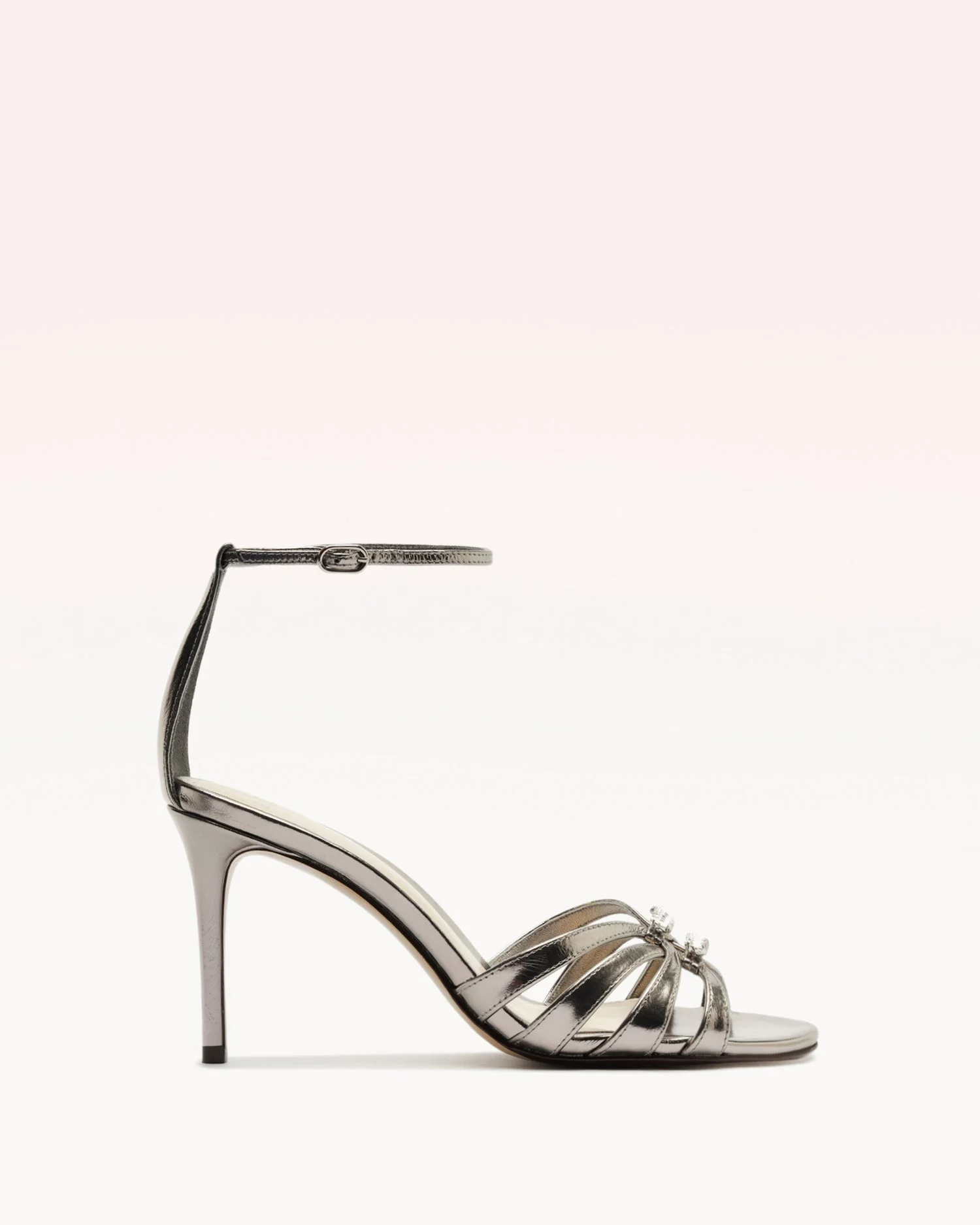 The Noelle Stiletto Sandal combines understated elegance with captivating sparkle. This charming sandal design features a graceful heel that elongates the silhouette. Adorned with shimmering zirconia crystals, each step radiates refined glamour. Crafted from supple leather, this versatile sandal transitions effortlessly from day to evening, making it an essential addition to any discerning wardrobe. Heel Style: Stiletto Heel Height: 3.3' | 85 mm Round Toe Material: Leather | Leather Sole SKU: B3596600230002