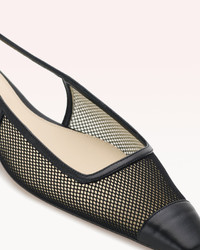 Introducing Olivia with a mesh twist. Featuring a sleek, slightly elongated square toe that adds a contemporary edge. The slingback design of Olivia is enhanced with a colorful net overlay and vibrant nappa leather, offering a fresh twist on modern elegance. Available in both a chic dressy flat and a 60MM version with our charming retro heel, these shoes blend classic sophistication with a touch of playful innovation. Material: Nappa Montecarlo Leather Sole Heel Type: Flat Heel Height: 0.59 In | 15 mm SKU: B0606200070004