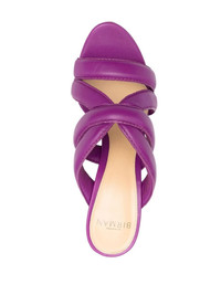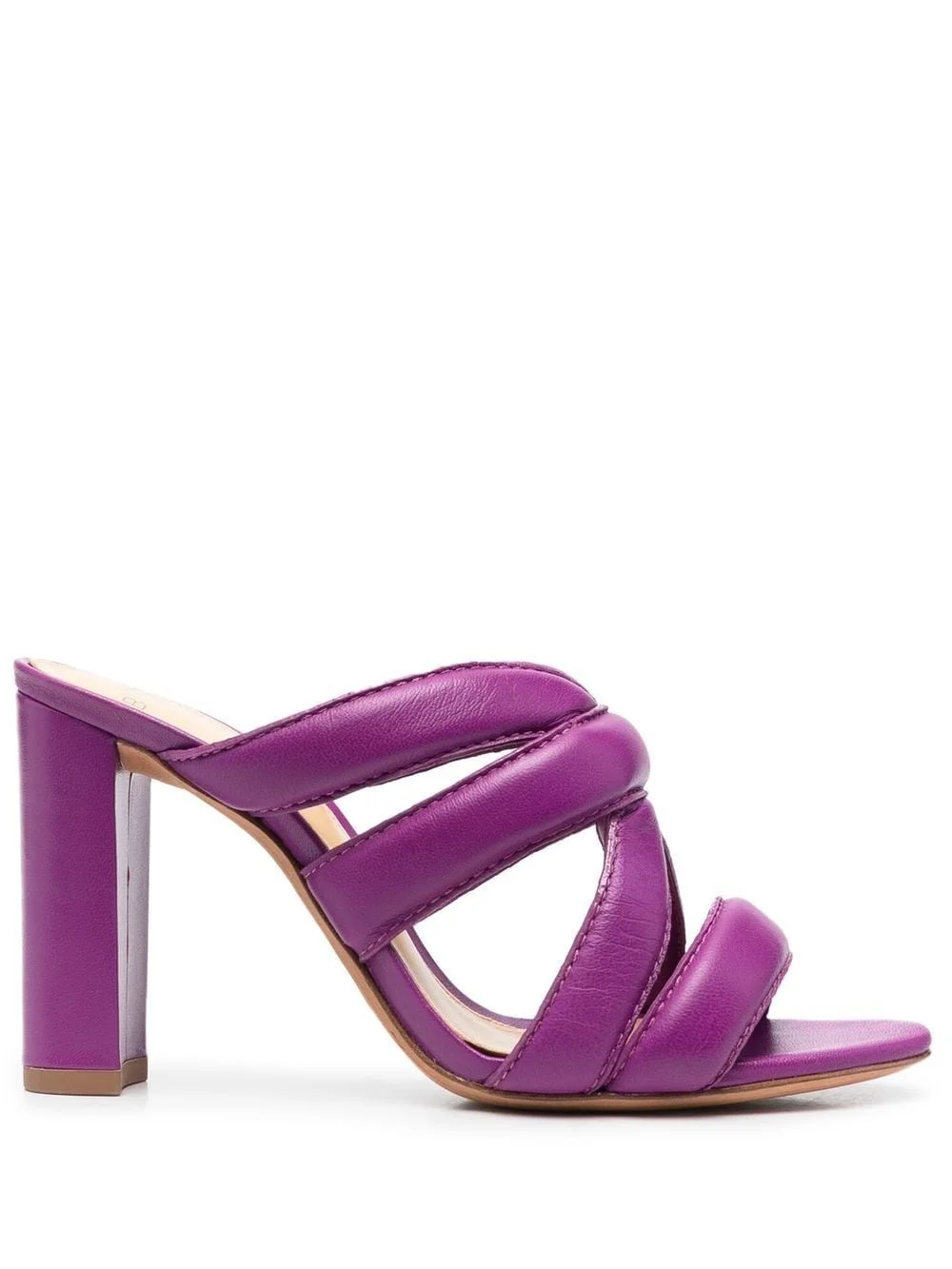 padded-strap 95mm sandals grape purple calf leather open toe slip-on style branded insole high 95mm block heel Made in Italy Composition Sole: Calf Leather 100% Outer: Calf Leather 100% Lining: Calf Leather 100% SIZE & FIT Measurement HEEL 3.74 in(9.5 cm)