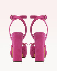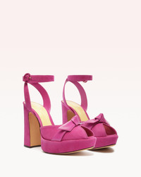 Daring and distinct, the Pepitta is a show-stopping and fiercely feminine addition to the Clarita family. With its peep-toe design and supportive ankle straps, the Pepitta is balanced by a slightly curved and ultra supportive platform heel. In soft suede with our iconic Clarita bow in contrasting leather, this style will quickly become one of your favorites—for this season and beyond. - Material: Suede - Leather sole - Round toe - Heel height: 4.7in | 120mm - SKU: B3588400050001