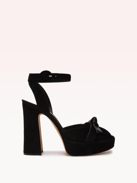 Daring and distinct, the Pepitta is a show-stopping and fiercely feminine addition to the Clarita family. With its peep-toe design and supportive ankle straps, the Pepitta is balanced by a slightly curved and ultra supportive platform heel. In soft suede with our iconic Clarita bow in contrasting leather, this style will quickly become one of your favorites—for this season and beyond. - Material: Suede & Nappa Leather - Leather sole - Platform heel - Round open toe - Heel height: 4.7in | 120mm - SKU: B3588400050003