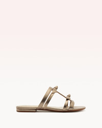 The Slim Clarita Cage Flat Gold strips away excess to reveal pure architectural intent. Delicate straps intersect in a daring cage formation, anchored by a signature bow that commands attention without apology. Built on a layered foundation and grounded by a flat sole, this sandal channels the Clarita's iconic DNA through a bold, minimalist lens—contemporary design that refuses to whisper. Heel Style: Flat Heel Height: 0.5 In | 12 mm Rounded Toe Material: Leather | Leather Sole SKU: B3514002340003