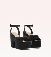 Experience the height of sophistication with our Sofia Platform Black. Featuring a central knot design and open upper, these shoes effortlessly blend refined style with organic shapes. The result? A delicate and versatile look that's perfect for any occasion.