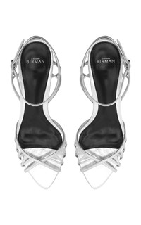 One of Brazil's most esteemed luxury footwear designers, CFDA member Alexandre Birman takes a sophisticated approach to his shoes. Delicate straps traverse the foot in an interplay of refined geometry, anchoring this evening essential with understated allure. Patent leather and chiarodi luna materials dance between luminous and matte surfaces, crafting a textural narrative that whispers rather than shouts. Poised on a 50mm stiletto, Solene 50 Silver distills elegance into a silhouette that moves between day and night with effortless sophistication. PRODUCT DETAILS - Heel measures approximately 50mm / 2" - Buckle-fastening ankle strap - Composition: leather - Made in Brazil