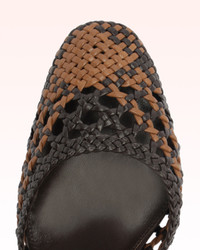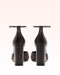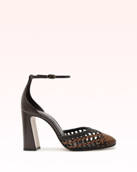 Taking weaving to the next level, this collection features 90mm and 125mm options with a rounded, enclosed front for a polished and sophisticated appearance. The distinctive woven leather, available in two two-toned and one black style, adds a hint of character to the design, while the vamp construction and enclosed toe achieve a delicate yet refined balance between comfort and elegance. Perfect for any occasion, these models offer the perfect fusion of luxury and grace. Heel Style: Block Hell Height: 3,5 In | 90 mm Square Toe Material: Leather | Leather Sole SKU: B3574700100002
