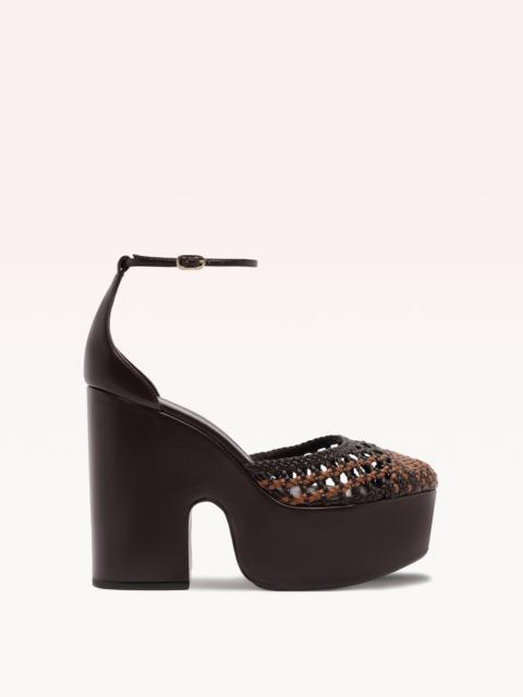 The Thay Platform pump boasts a strong silhouette with a rounded toe and a Salome front closure. Offered in 125mm heights with a platform, it is crafted from new patent leather that enhances the shoe’s glossy finish and timeless elegance. Heel Style: Platform Hell Height: 4,9 In | 125 mm Rounded Toe Material: Leather | Leather Sole SKU: B3623000020002