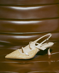Introducing the Tita Raffia, a beloved core style with a charming summer allure. Crafted from exquisite raffia fabric in a basketry pattern, it features a sleek pointy-toe and elegant slingback. Available in a flat version or stylish retro heel, adding timeless elegance and modern sophistication to any look. Material: Nappa Montecarlo Leather Sole Heel Type: Sculptural Heel Height: 2.36 In | 60 mm SKU: B0606100040003