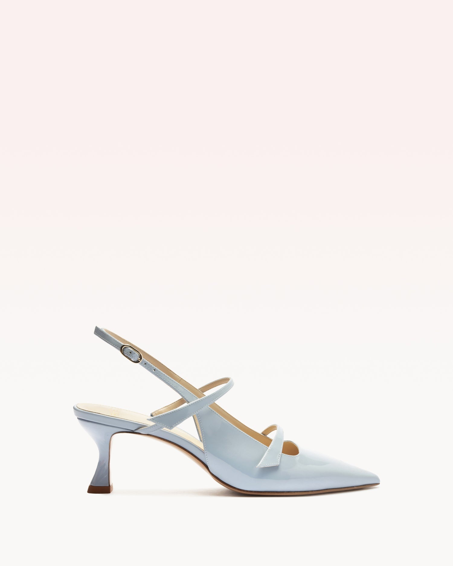 Meet the ideal transitional Pump: a stunning slingback inspired by Alexandre Birman's Tita style. It's a graceful fusion, incorporating elements of the classic refinement found in the Clarita sandal. Crafted with leather strings reminiscent of the Clarita's shape, this slingback elegantly envelops the foot. The sharp and timeless silhouette of the pointed toes adds a touch of elegance to the overall design. - Material: Vernice - Leather sole - Pointed toe - Heel height: 2.4in | 60mm - SKU: B0606100010003