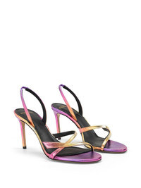 Tita 85mm gradient leather sandals Highlights - Sunset yellow/electric purple - Nappa leather - Metallic effect - Gradient effect - Almond open toe - Crossover strap at the toe - Elasticated slingback strap - 85mm stiletto heel - Branded leather insole - Leather outsole Made in Italy Composition Outer: Nappa Leather 100% Lining: Leather 100% Sole: Leather 100% SIZE & FIT Measurement HEEL 3.34 in(8.5 cm)