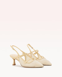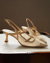 Introducing the Tita Mesh, a beloved core style with a charming summer allure. Crafted from exquisite mesh fabric in a basketry pattern, it features a sleek pointy toe and elegant slingback. Available in a flat version or stylish retro heel, adding timeless elegance and modern sophistication to any look. Material: Nappa Montecarlo Leather Sole Heel Type: Sculptural Heel Height: 2.36 In | 60 mm SKU: B0606100050001