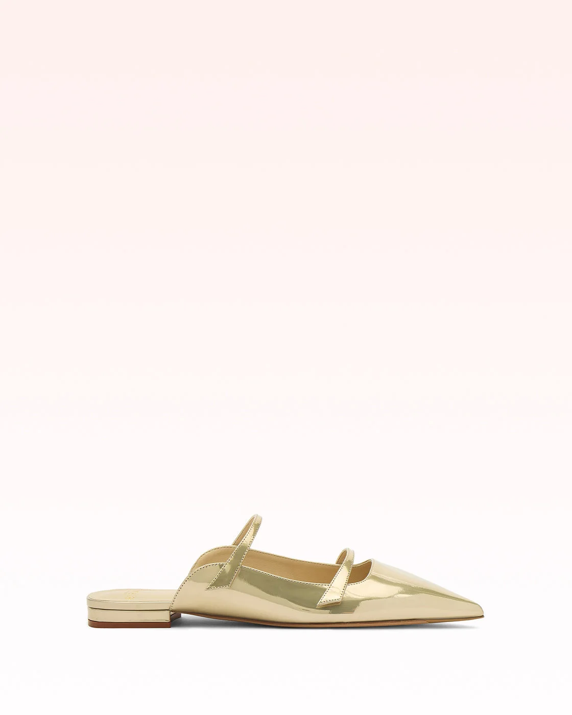 The refreshed Tita Mule reimagines one of the brand’s iconic shapes with soft side curves that elegantly hug the foot. Its natural form, complemented by a delicate color palette and metallic accents, presents a contemporary take on a timeless classic. This collection, offered in multiple heights, merges lightness, modern design, and the brand’s distinguished craftsmanship. Heel Style: Flat Heel Height: 0.5' | 15 mm Pointed Toe Material: Leather | Leather Sole SKU: B0606000120001