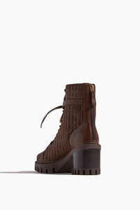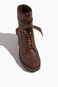 The Alexandre Birman Tresse Combat Boot is an update on a classic. These combat boots are crafted in intricate woven leather with a laceup front and their signature bow detail. FIT DETAILS - Combat boots - Ankle length - Laceup front - Zip back - 20mm heel - Leather