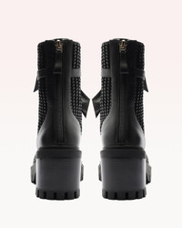 Step out in style with the Tresse Combat Suede Bootie. Crafted from fine semi-shine leather, this combat-style bootie exudes sophistication and sleekness. The intricate leather tresse adds depth and texture to the bimaterial design, while the rubber sole provides comfort and grip for all-day wear. Heel Style: Block Hell Height: 2,6 In | 65 mm Rounded Toe Material: Leather SKU: B3572900060003