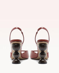 The Tropicana 85 pairs a refined slingback silhouette with a distinctive wooden heel constructed from graduated spheres. Perforations at the heel counter provide understated craftsmanship, while the geometric heel design introduces contemporary character to an enduring style. A sophisticated choice for those who value both heritage and innovation. Heel Style: Sculptural Heel Height: 3.3 In | 85 mm Leaf Toe Material: Leather | Leather Sole SKU: B3629100010002