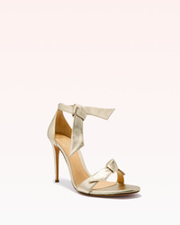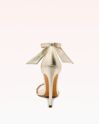 Take your fashion-forward with the Clarita Sandal. Its glossy metallic finish adds a touch of sophistication to any look, while its design creates an edgy silhouette. Delivering chic luxury, Clarita is your go-to for modern elegance. Please note: this style runs small. We suggest taking half size larger than your normal size. - Material: Metallic Nappa - Stiletto high heel - Round open toe - Bow tie strap at the ankle - Heel height: 3.9in | 100mm - SKU: B0014580000185