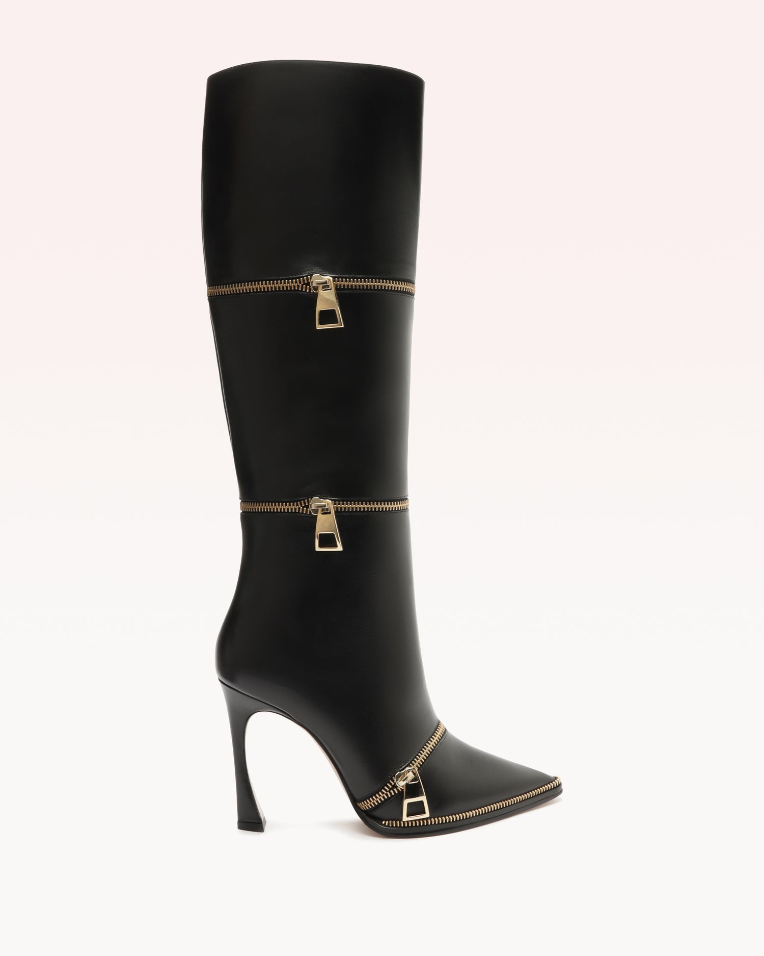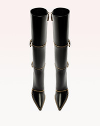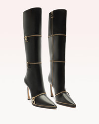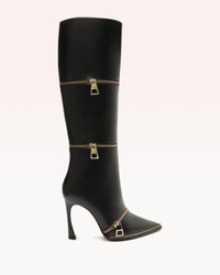Crafted in luxurious nappa leather, our Zipper boots offer a timeless, elongating silhouette, featuring three rounds of polished zippers and a stylish zipper welt finishing, making a statement with urban flair. Heel Style: Geometric Heel Heel height: 3.3in | 85mm Pointed Toe Material: Nappa Leather Leather Sole SKU: B3609700010002