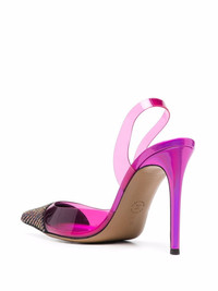 contrast slingback pumps Designed with a transparent upper in a pink hue, these pumps from Alexandre Vauthier are punctuated with glimmering iridescent crystals at the toes. The clear construction allows the sparkling panel to take focus, creating an illuminating effect for the pointed-toe silhouette. Highlights - Pink/black - Leather - Contrasting panel detail - Elasticated slingback strap - High heel - Pointed toe Made in Italy Composition Outer: Plexiglass 100%, Calf Leather 100% Lining: Calf Leather 100% Sole: Calf Leather 100% SIZE & FIT Measurement HEEL 4.33 in(11 cm)