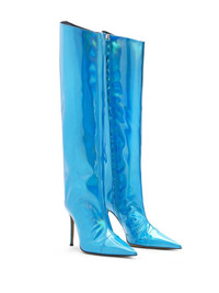 Alex 105mm metallic-finish boots Highlights - Aqua blue - Calf leather - Metallic finish - Pointed toe - Side zip fastening - 105mm stiletto heel - Leather sole Composition Sole: Leather 100% Outer: Polyurethane 70%, Polyester 30% Lining: Calf Leather 100%