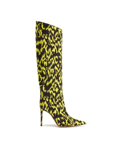 Alex 110mm graphic-print boots Highlights - Black/yellow - Leather - Satin finish - All-over graphic print - Pointed toe - Side zip fastening - 110mm stiletto heel - Leather sole Made in Italy Composition Silk 100%