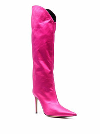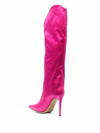 Alex satin boots fuchsia satin finish pointed toe side zip fastening branded leather insole high stiletto heel Made in Italy Composition Outer: Fabric 100% Sole: Leather 100% Lining: Leather 100% SIZE & FIT Measurement CIRCUMFERENCE 15.74 in(40 cm) HEEL 4.33 in(11 cm) HEIGHT 17.32 in(44 cm) Sole height 0.39 in(1 cm)